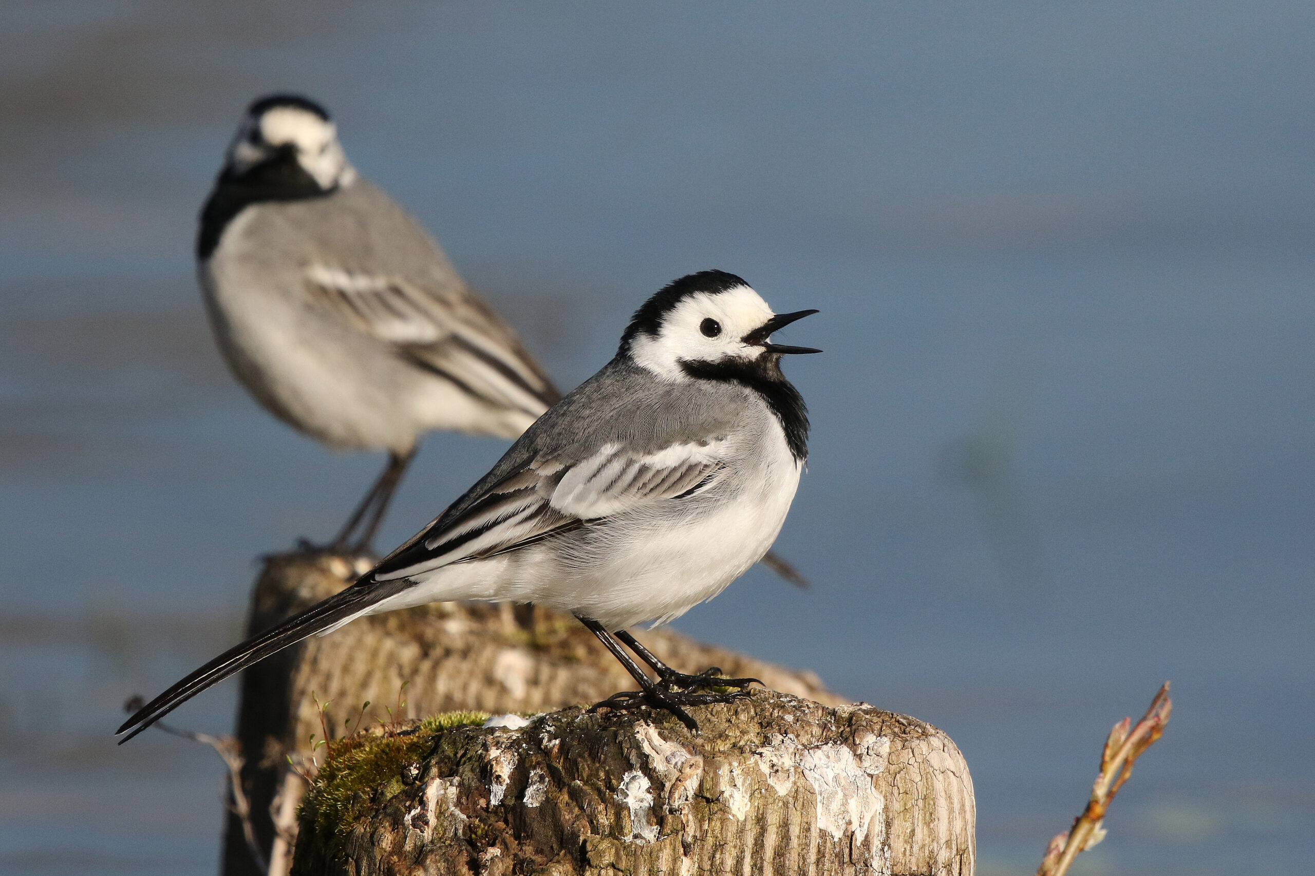 Zahlreiche Bachstelzen jagen über der Uferlinie des